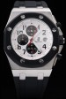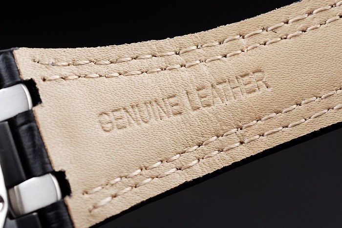 Bracelet: Heat embossed Audemars Piguet black crocodile leather strap with double white stitching and Audemars Piguet engraved stainless steel fold-in clasp