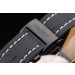 Bracelet: Breitling heat embossed black crocodile leather strap with white thread stitching and logo engraved ion-plated stainless steel fold-in clasp