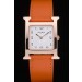 Hermes Heure H Rose Gold Bezel Orange Leather Strap White Dial 80234