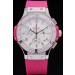 Bracelet: Textured pink rubber band with polished stainless steel push-button hook clasp and Hublot engravings
